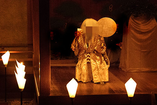午後6時30分、能舞台の周りに設置された15ヶ所のろうそくに灯がともされました。